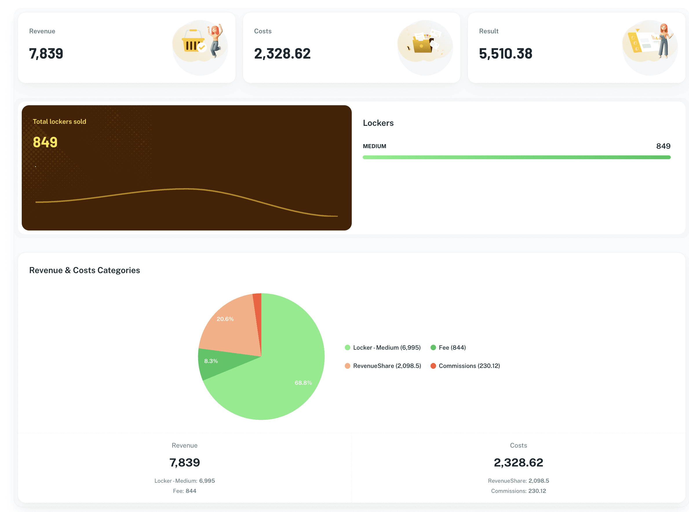 Our real-time dashboard gives you full control over your locker operation, with live insight into sales, usage and availability.